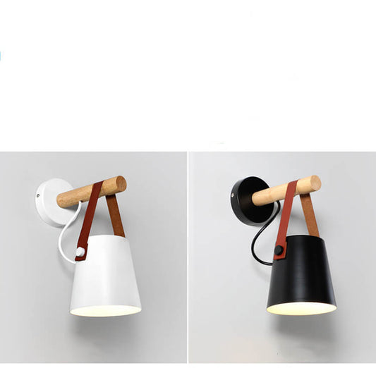 HoutArm - Wandlamp met ijzeren lampenkap en houten arm