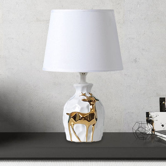 LisaLight - Lámpara de noche cónica de tela nórdica con apliques de cerámica